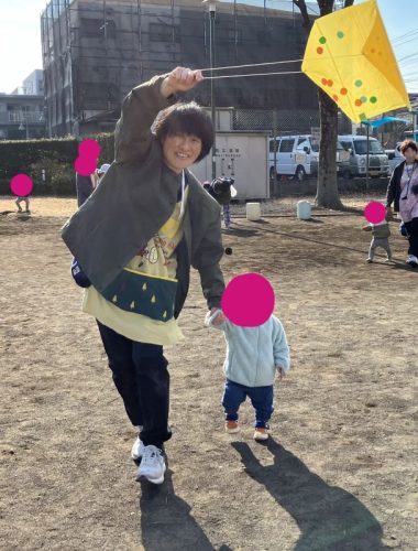 自分たちで作った凧が上がると子どもたちはとっても嬉しそう☺ たくさん走って楽しんでいましたよ!✨