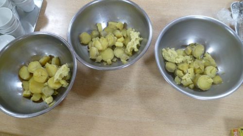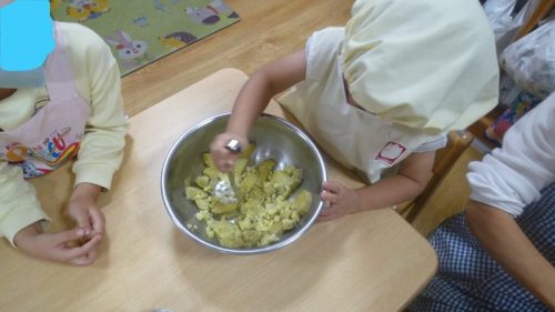 蒸したさつまいもをつぶして砂糖・牛乳を加えて混ぜて
