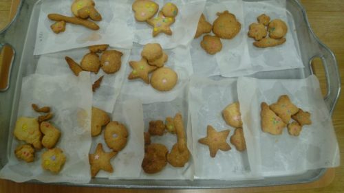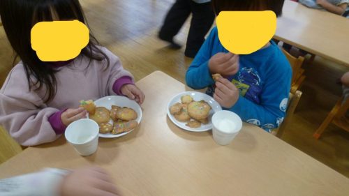 今日は、毎年楽しみにしている『クッキー作り』の調理保育がありました生地から作るので 朝から大忙し💦 グループごとに生地も作り、型抜きをしてからトッピングもして楽しみました(^_-)-☆ もちろん一番のお楽しみは食べること(^^♪美味しそうにパクパクと食べてました