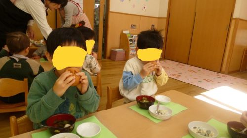 2歳児クラスのお友だちも大きな口を開けて食べてました